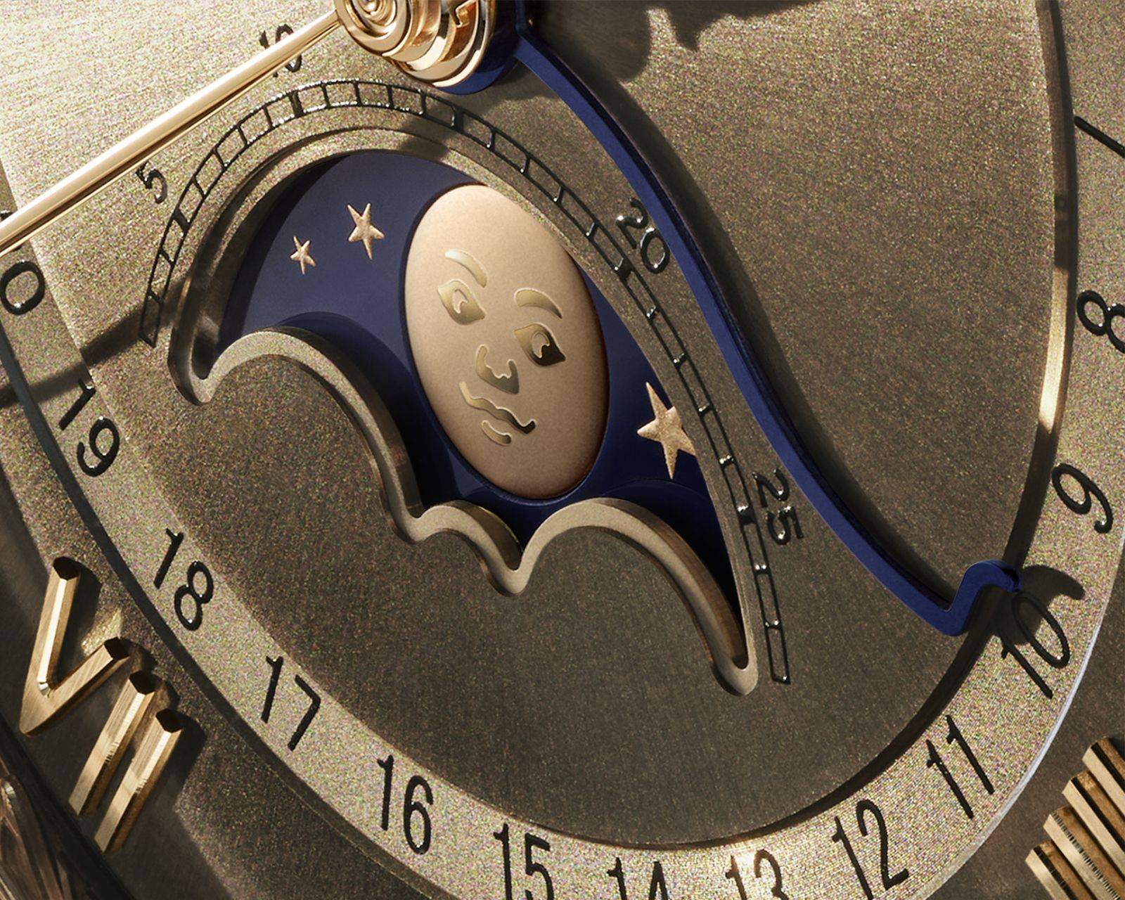 其中最引人瞩目的,当属所有日历月相腕表新品上,宝珀第二个品牌LOGO“月相脸”的呈现。作为真正的月相大师,宝珀月相显示功能丰富多样,风格独具,在制表界占据着非凡地位。这一集诗意设计与精湛技术于一身的复杂功能,在宝珀乃至整个瑞士传统高级制表业的复兴中都扮演了关键角色,并由此成为品牌最具代表性的经典复杂功能之一。此次,宝珀为月相脸创造出更大、更明亮、更具表现力的视觉冲击。经扩大的月相显示视窗配以陶瓷月相显示盘,经缎面打磨工艺装点的18K金镶嵌立体月相图案,展现栩栩如生的动人月相脸,更显深邃立体。