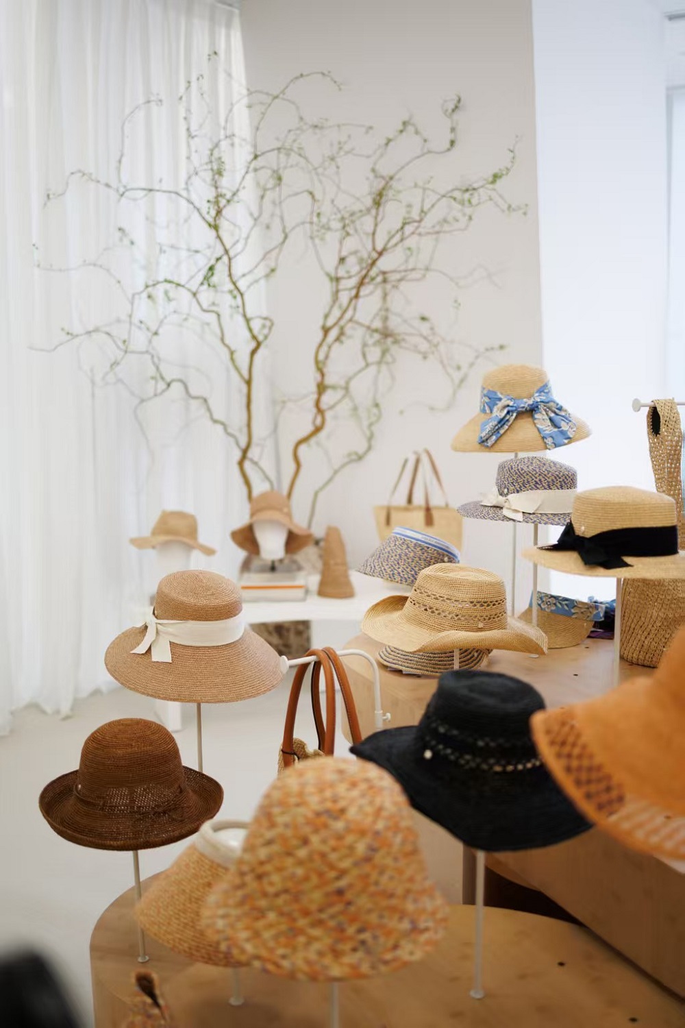 伴随此次亮相,Helen Kaminski 特别打造了其在中国内地的首个品牌展示空间。空间延续品牌全球统一的设计理念,以标志性的天然拉菲草为核心元素。由拉菲草编织而成的艺术装置点缀于墙面与陈列之间,自然的纹理与柔和的光线相映,营造出沉浸式的情境氛围,引领来访者邂逅一场品牌源于自然的美学之旅。